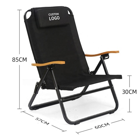 Custom Logo Portable Outdoor Lounge Chair Heavy-Duty Adjustable Folding Reclining Camp Seat Iron Construction for Travel Picnics